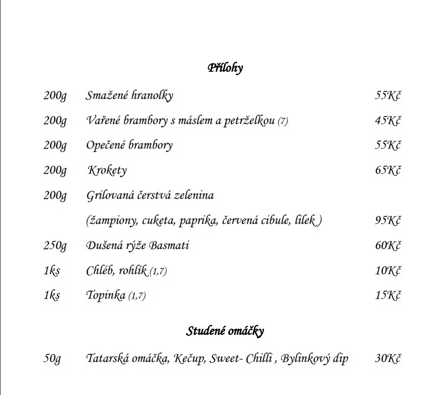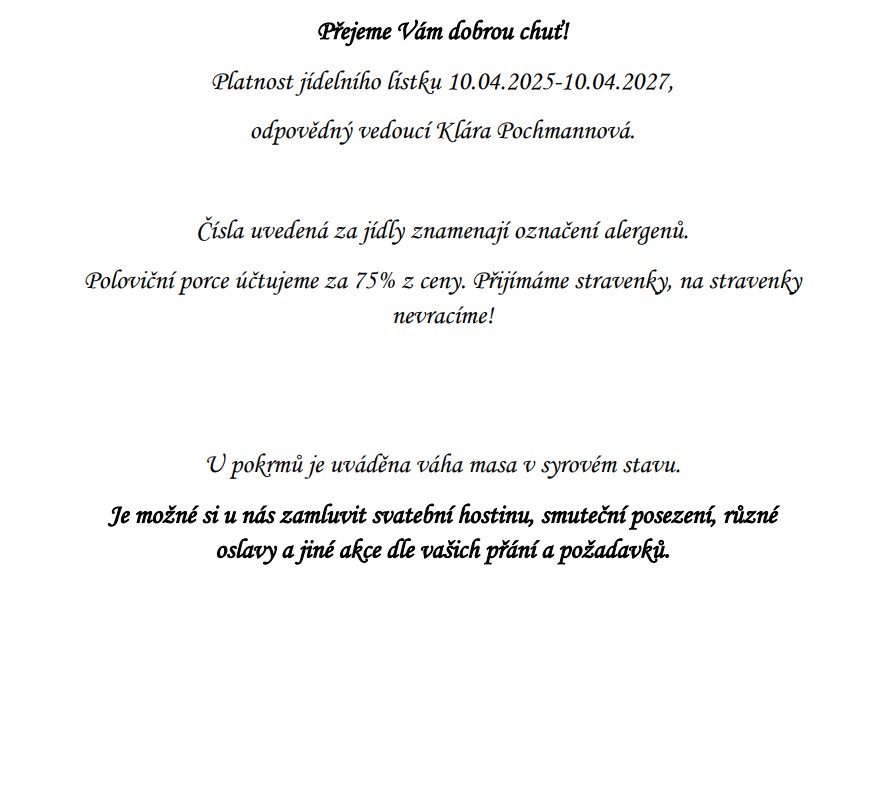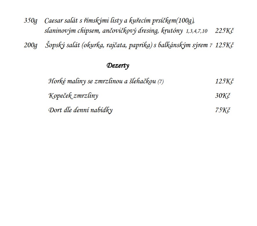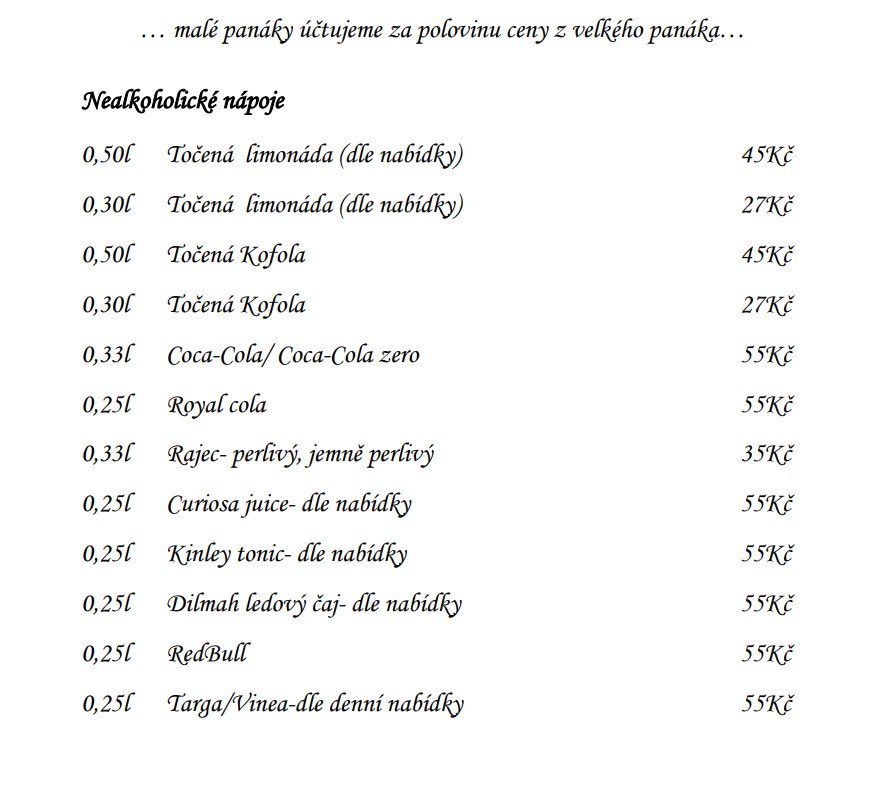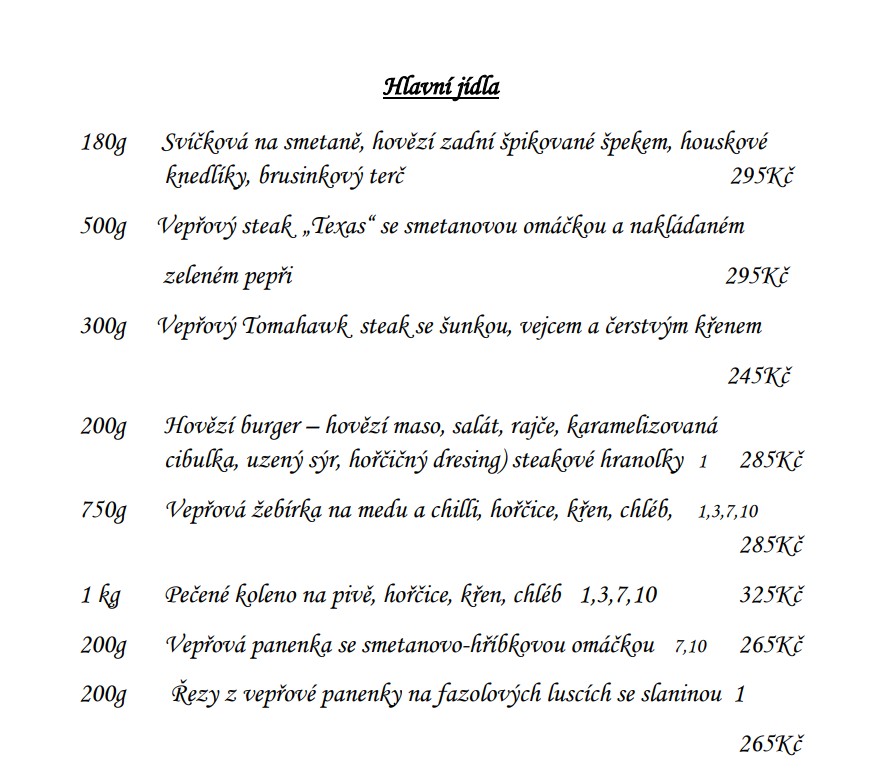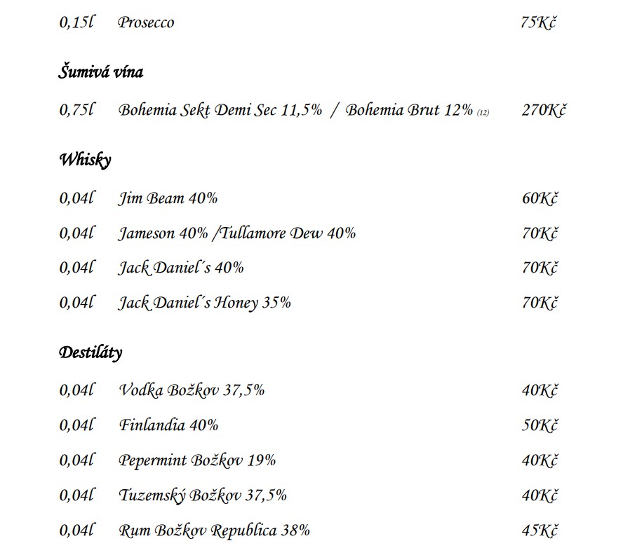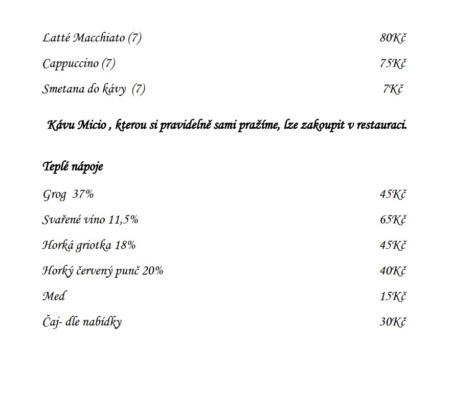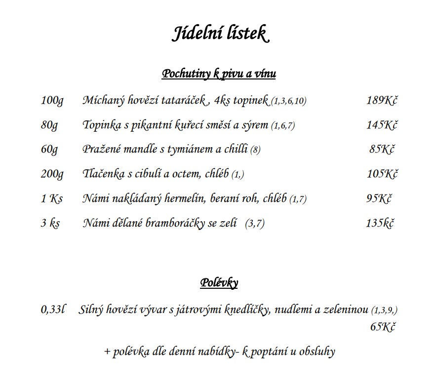 Jídelní a nápojový lístek